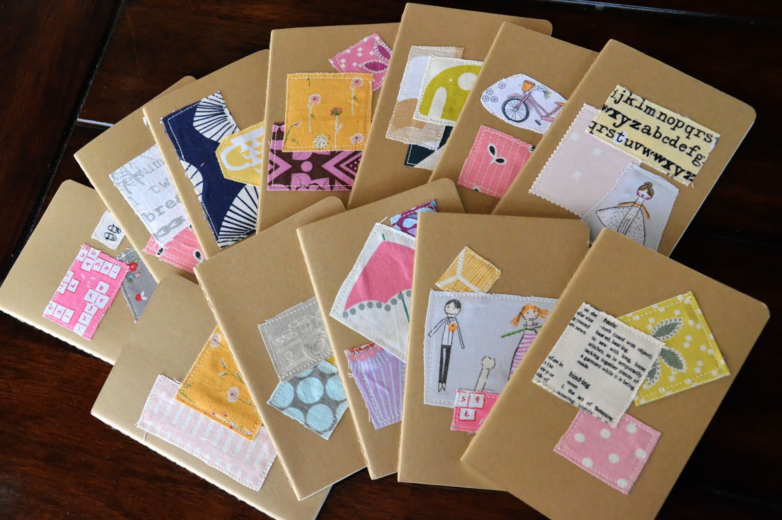 These were quick and lots of fun. I used a bit of glue stick to tack them on to the cover, then machine sewed around the edges. Easy peasy. And they make great little gifts for friends or hostesses over the holiday season, each with their own little bit of personality.