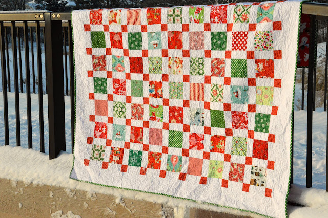 Postage Stamp Quilt with Modern Lattice back